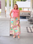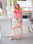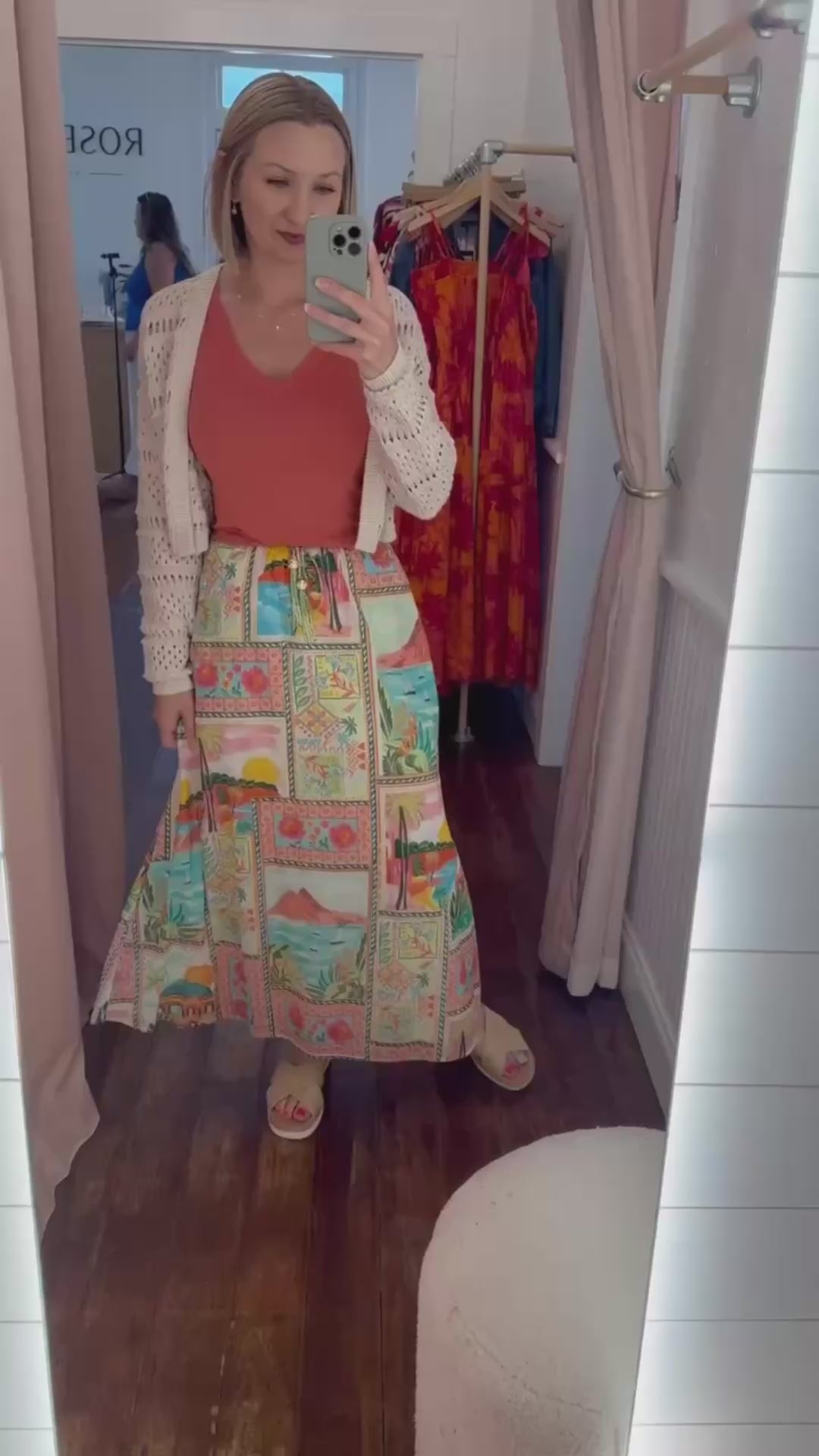 The Harriett Skirt is a standout midi with effortless style. Designed in a bold patchwork print, it features a flowy silhouette and easy mid-length cut that moves with you. Lightweight and versatile, it pairs perfectly with a simple top or tank for a look that works from day to night with minimal effort.