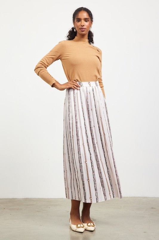 The Milani Skirt is unlike anything you own! This skirt features an elastic waistband, pleated detailing, and is a midi length skirt, but the real star of the show is the chain link print. Pair this skirt with our Giana Top for a matching outfit!