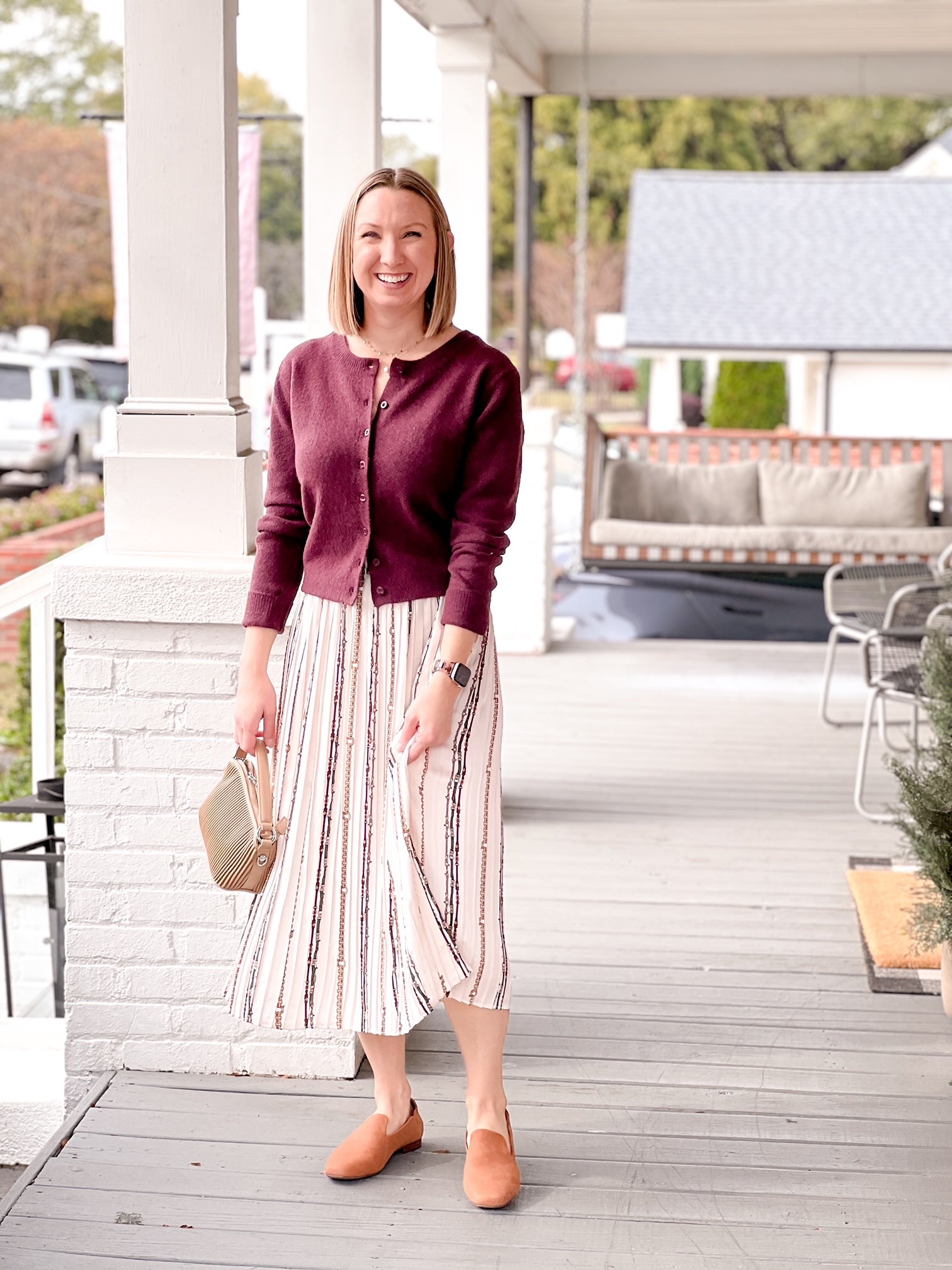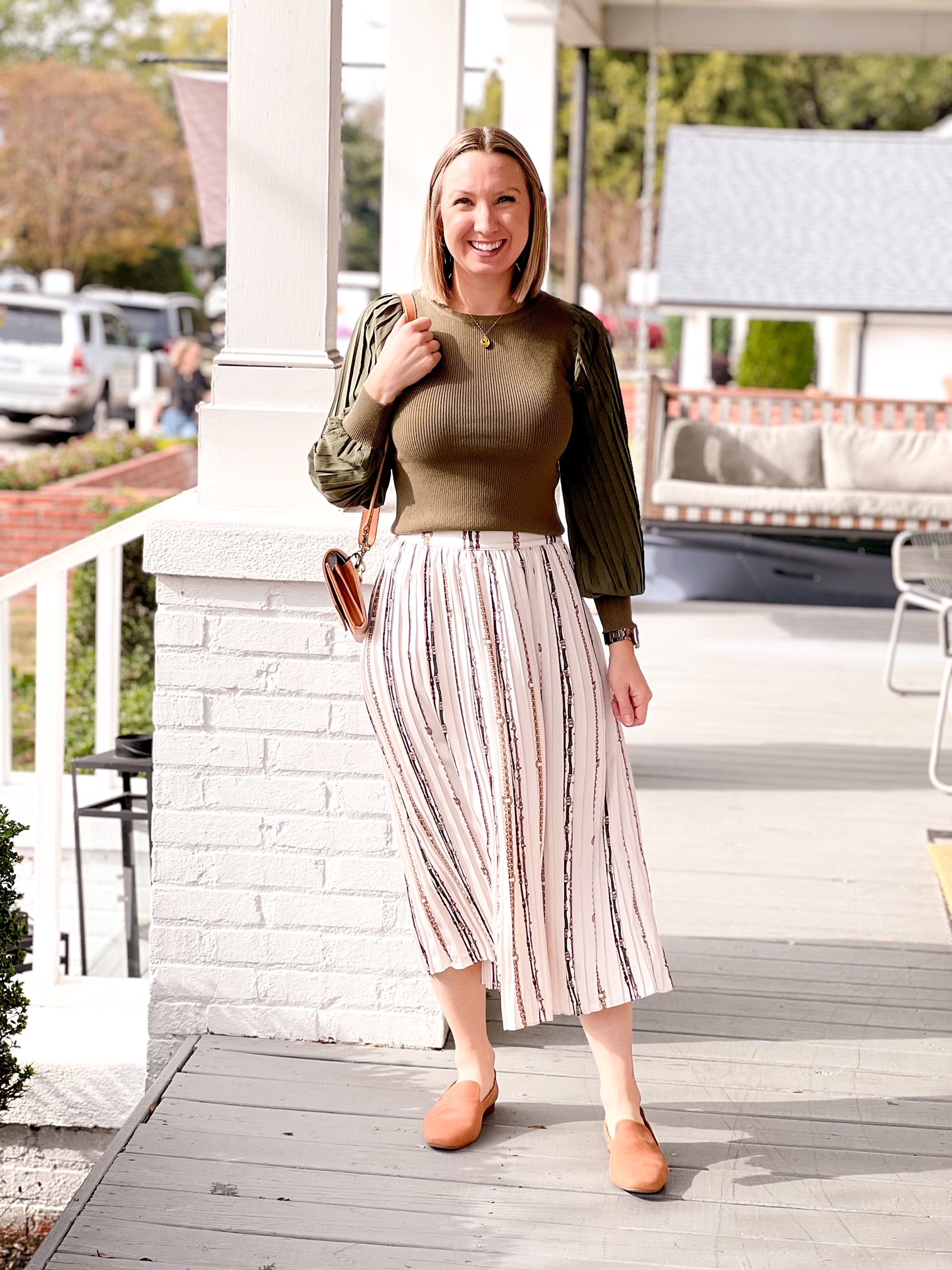 Model is wearing a size small. We find that the Milani Skirt runs true to size.