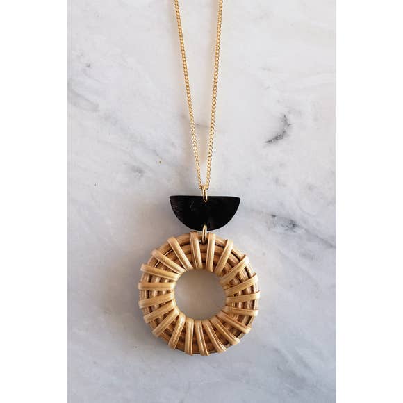 Earthy and effortlessly-chic, say hello to the Ninh Binh Buffalo Horn & Rattan Donut Pendant Necklace.