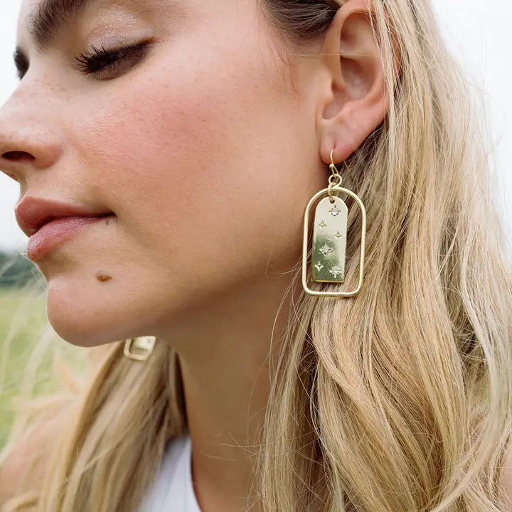 The Ruchi Crescent Moon Gold Dangle Earrings for women are intricately etched with ferns and a radiating heart with a tiny cubic zirconia studded in the center of the heart. The moon represents the divine feminine energy. Celebrating the radiance of the night sky, these trendy dangling crescent moons would add a touch of celestial charm to any outfit and make a unique gift for her.