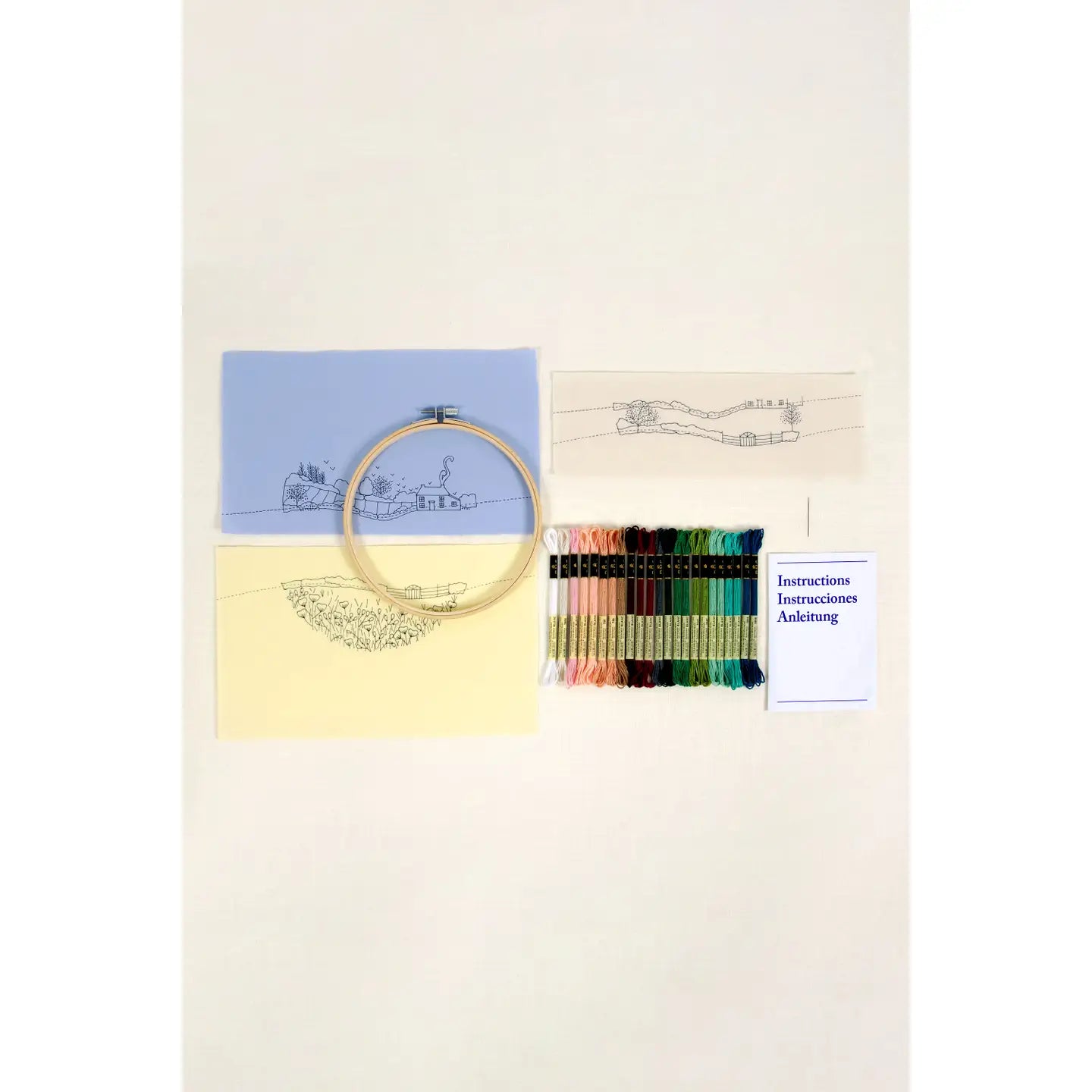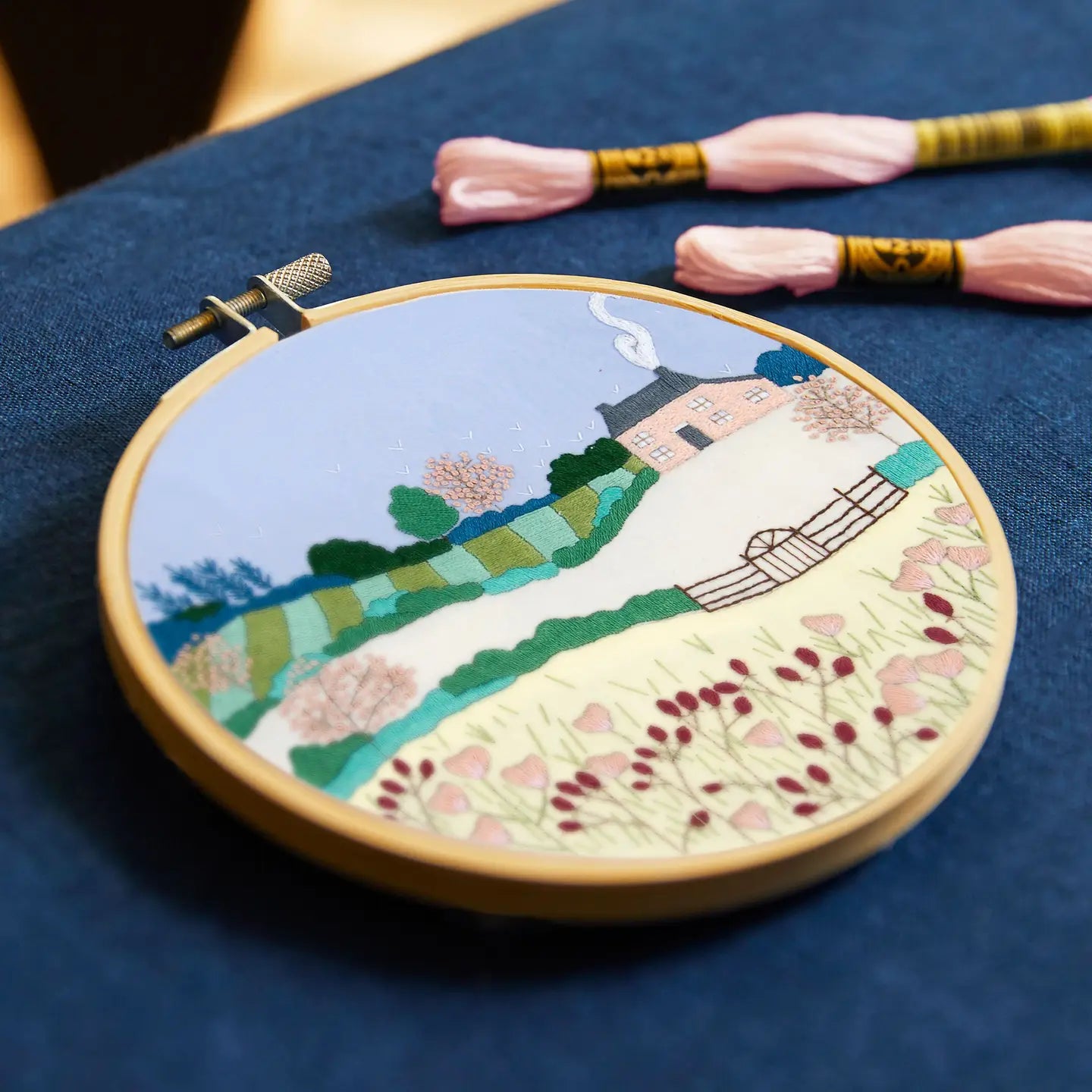 UK based designer, Georgie K. Emery creates charming pastel landscapes using applique and embroidery. Using the layers of different fabrics and the DMC Six-Strand Embroidery Floss in this kit you’ll be able to recreate her Cotswold inspired scene. This kit contains all the high quality threads, fabrics and accessories you need as well as full color instructions. With this kit you’ll learn how to use classic embroidery stitches including french knots and satin stitch to add textures and detail.