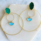 These dramatic hoops are calling your name! Designed with an pointed enamel emerald post and fun little turquoise half circles, these double hoops could bring enough drama for an evening out or casual enough for a lazy afternoon.
