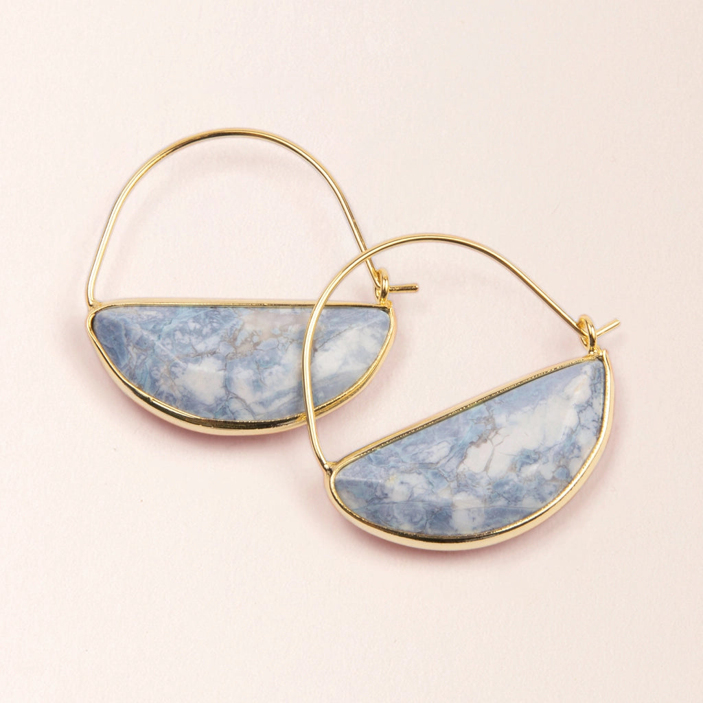 - Materials: 1 3/8'' drop, semi precious half-circle stone