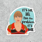 Swifties rejoice, we have a new one! Vinyl sticker with original artwork of the incomparable taylor swift. Quote reads, "it's me, hi. I'm the problem. It's me."