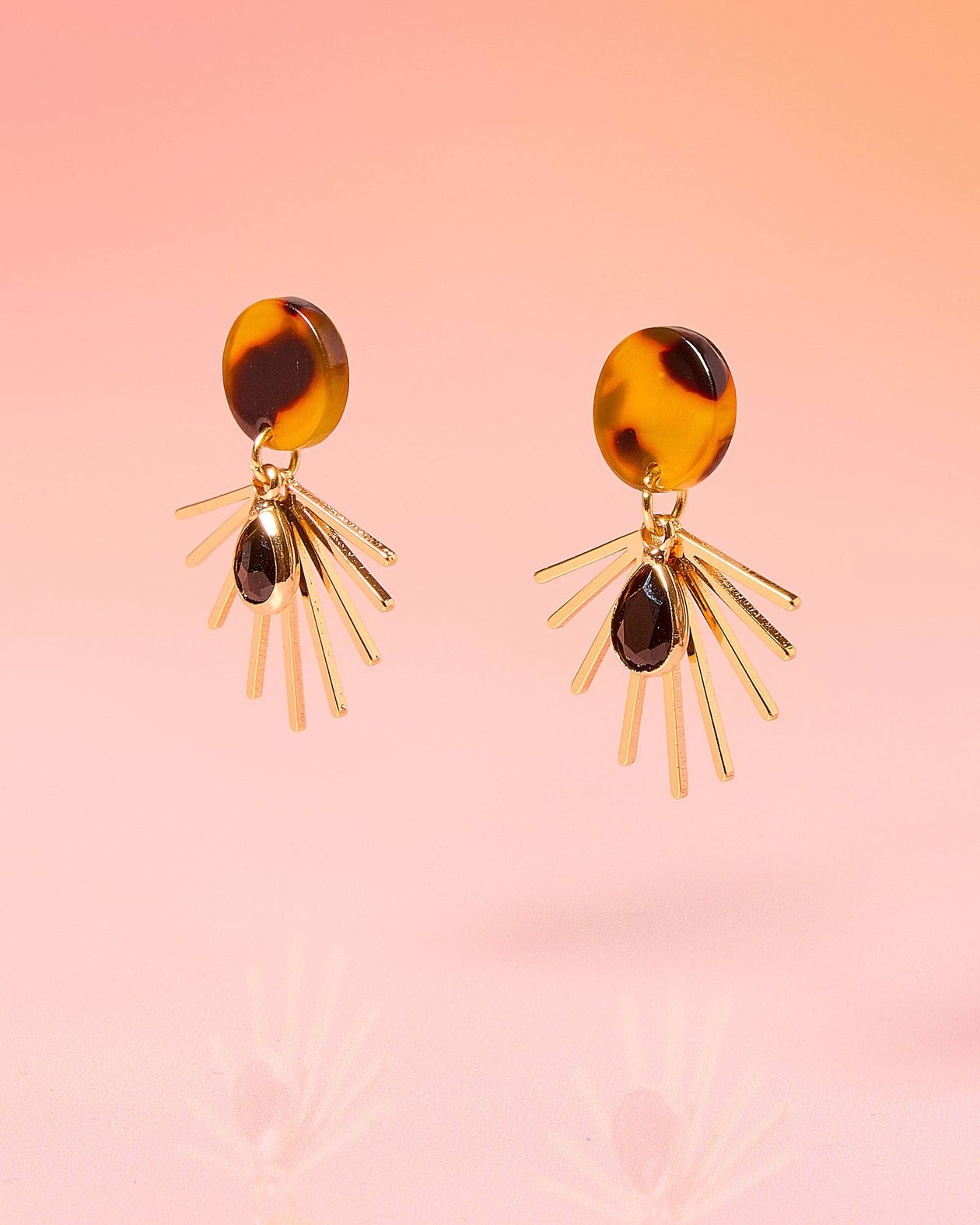 The Tortoise Small Dangles feature a sophisticated vertical design, pairing a classic tortoiseshell resin post with a radiant 18k gold-plated sunburst charm. Engineered for a "featherlight" feel, these earrings offer a polished, artisan look that transitions seamlessly from office hours to evening soirées.